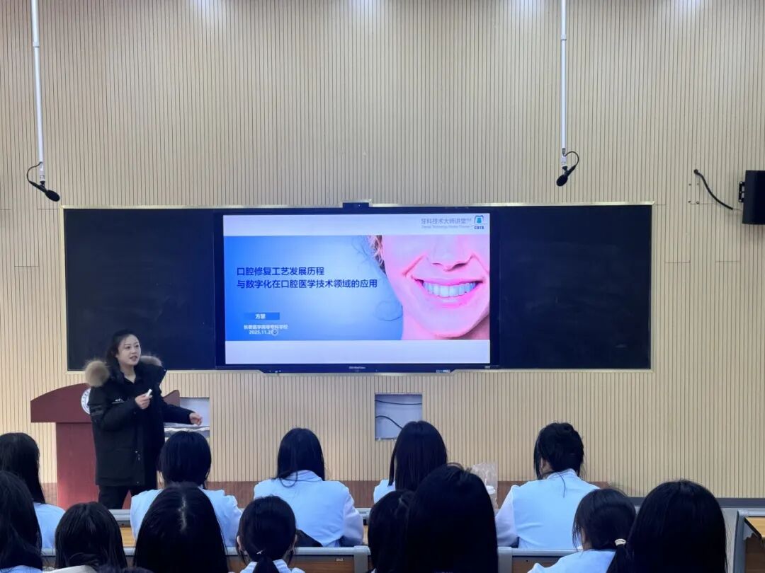 2025年11月28日,临床医学院在善学楼1333举办聿仁讲堂专题讲座,特邀数字齿科项目负责人方慧老师,为2025级口腔医学技术专业学生作“口腔修复艺术发展与数字化技术应用”主题分享,共同探讨行业前沿与职业规划。